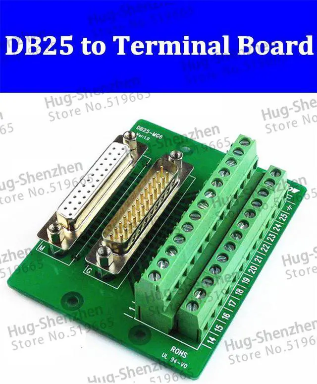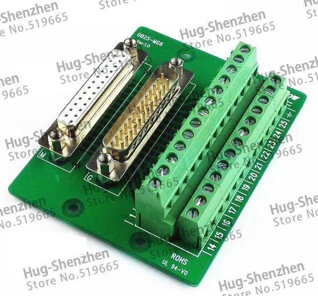 Connector DB25 D-SUB male female Rail DIN mount Terminal breakout board