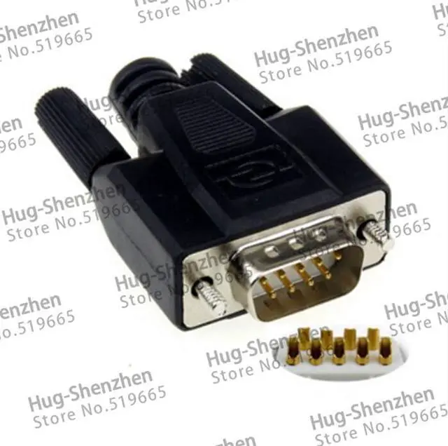 • 10PCS DB9 Pin Serial Male Plug Black Shell Plastic VGA COM connector 232/485 with Gold Plate