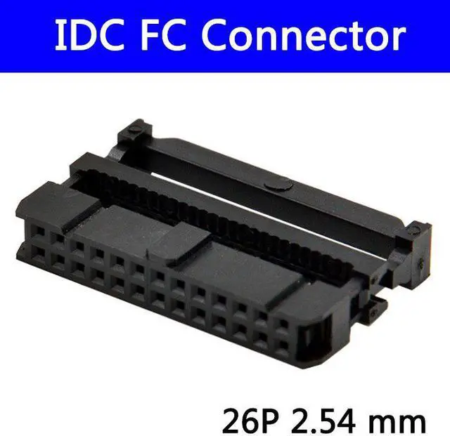 • 100pcs 2.54 mm IDC Socket Female FC 26P 26pin 2*13 Rectangular Connector adapter Ribbon Cable 1.27 mm