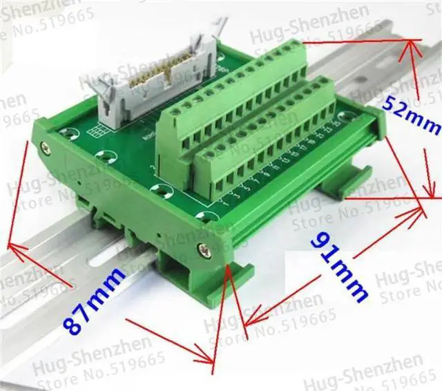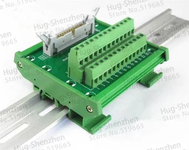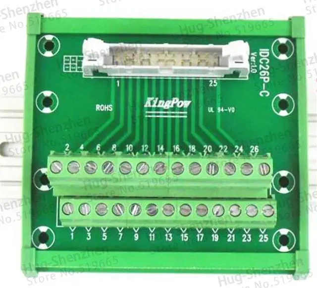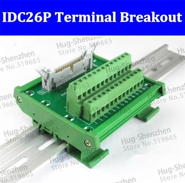 • IDC26P IDC 26 Pin Male Connector to 26P Terminal Block Breakout Board Adapter PLC Relay Terminals DIN Rail Mounting w. Shell