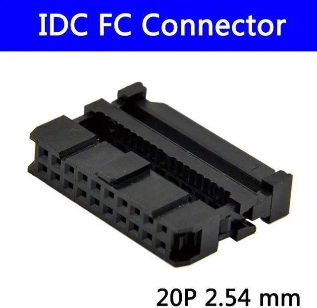 • 100pcs 2.54 mm IDC Socket Female FC 20P 20pin 2*10 Rectangular Connector adapter Ribbon Cable 1.27 mm