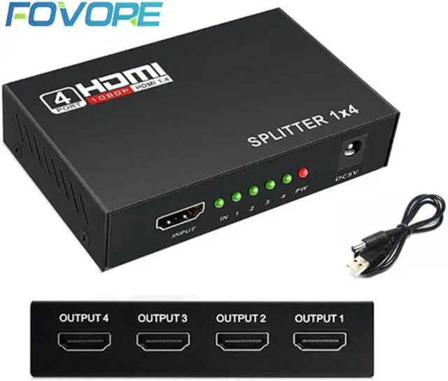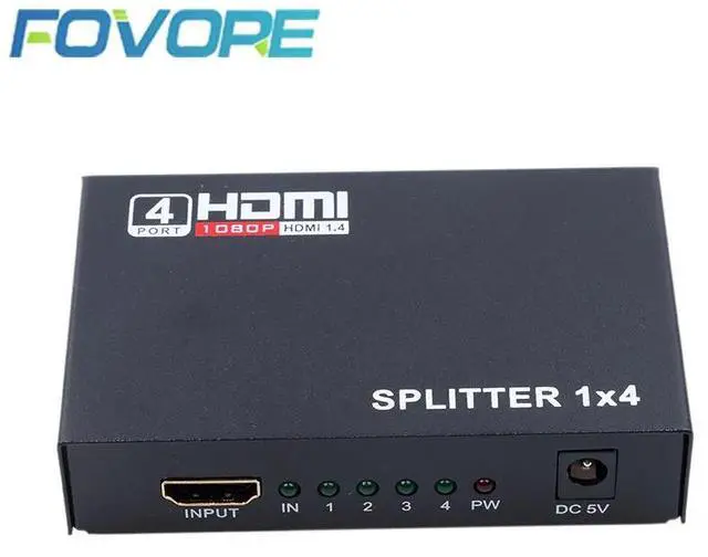• 5.1Gbps HDMI Splitter 1X4 4 Port Hdmi Hub Repeater Amplifier 1.4 3D 1080p 1 in 4 out With Power Supply