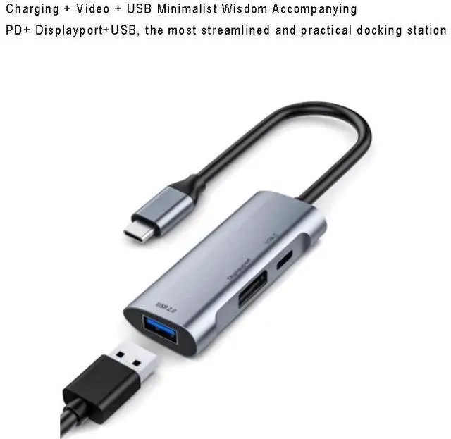 • USB C HUB Type-C Docking Station 3 in 1 4K@60Hz DisplayPort PD 60W USB 2.0
