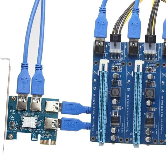 • PCIe 1 To 4 PCI-Express 16X Slots Riser Card PCI-E 1X To External 4 PCI-e USB 3.0 Adapter Multiplier Card For Bitcoin BTC Miner