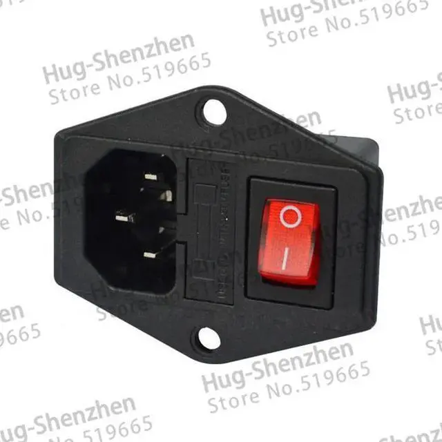 China products 10pcs 3 in 1 Fuse switch socket with light Red, AC power socket Plug 3Pin 10A 250V