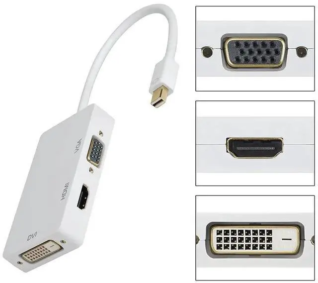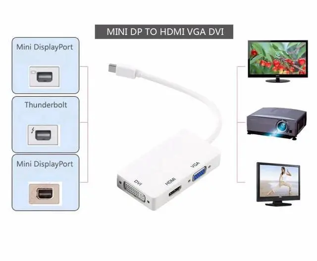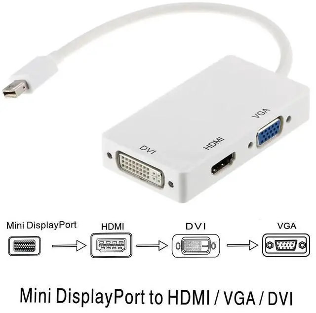 • Mini Display Port to VGA HDMI DVI Adapter 3 In 1 Cable Thunderbolt Display Port Converter For MacBook Air Pro Retina Mac iMac