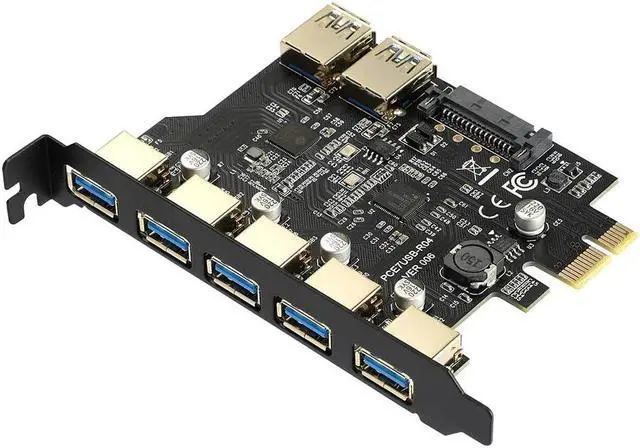 • SuperSpeed USB 3.0 7 Port PCI E card with a 15pin SATA Power Connector PCI-E Adapter Expansion Card NEC720201 and GL3510 chipset