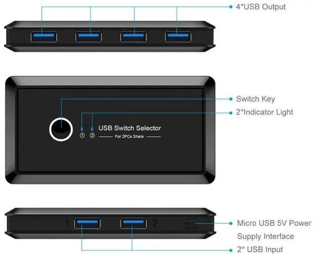 • USB3.0 switch printer sharing device 4 ports 2 computers sharing mouse and keyboard 2 in 4 out one-key switch