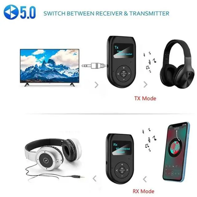 PzzPss Bluetooth Transmitter and Receiver 3-in-1 Wireless Bluetooth 5.0 Adapter with Display Screen Low Latency Audio Adapter