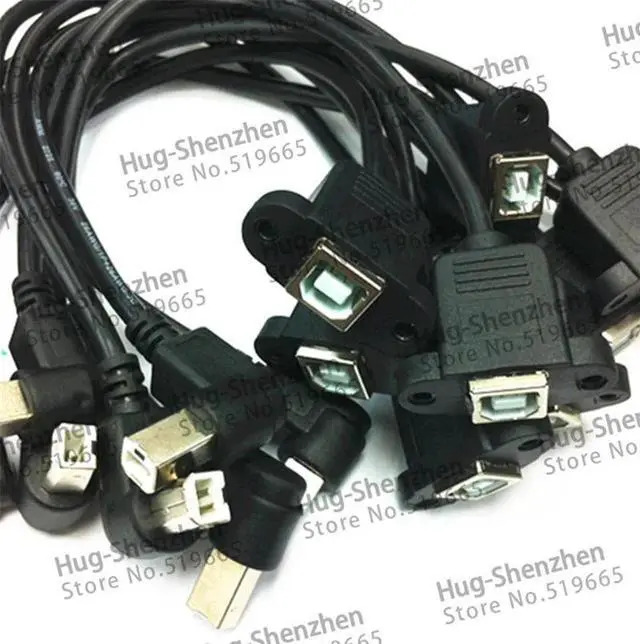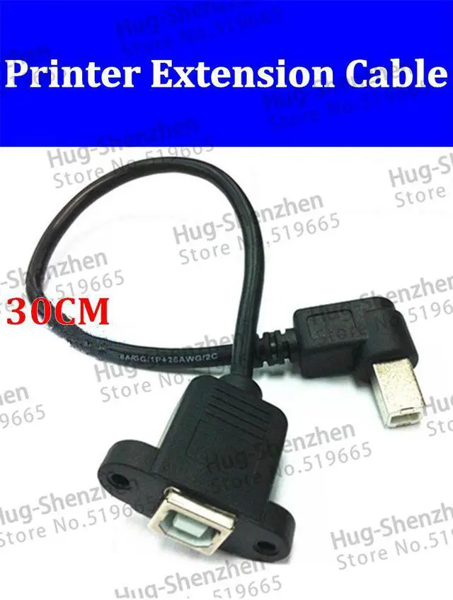 • 30cm 90 degree right angled USB B Male to Female Panel Mount extension cable printer 10pcs/lot