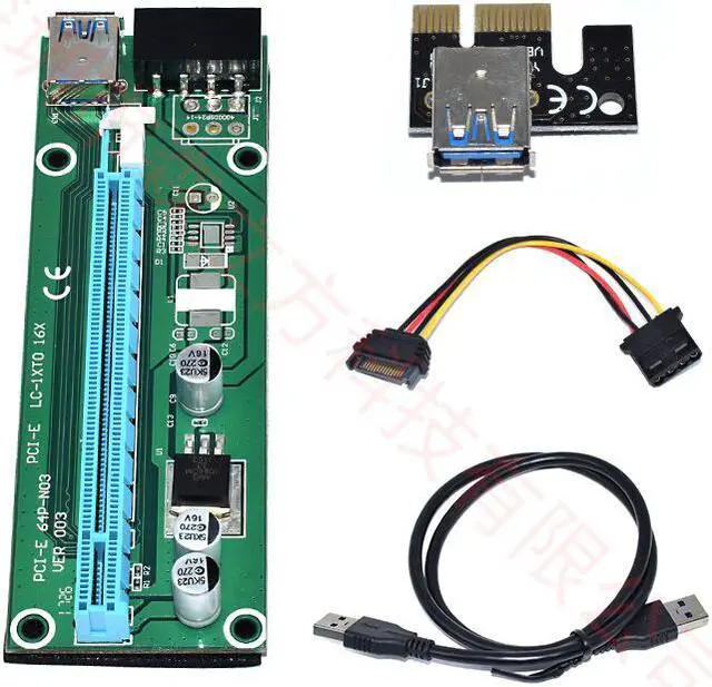 • PCI-E Riser Card USB 3.0 Express 1X 4x 8x 16x Extender Adapter SATA 15pin to 4pin Power Cable for BTC Mining Miner