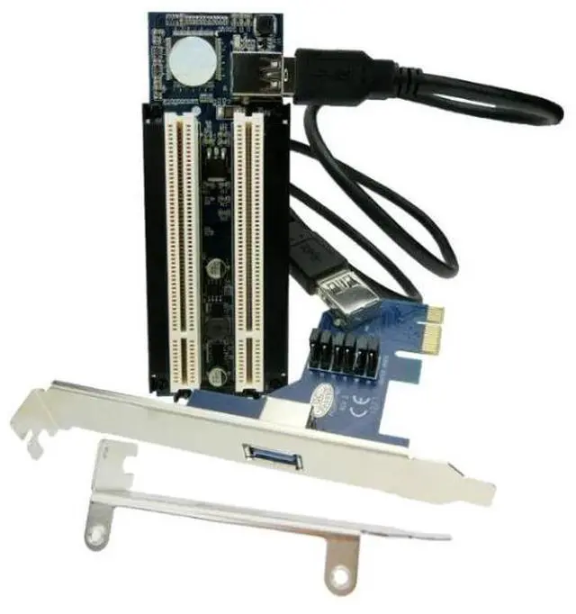 • Free Shiping PCI-E X1 to Dual PCI Slot Riser Extend Adapter Card with USB 3.0 Cable for Desktop