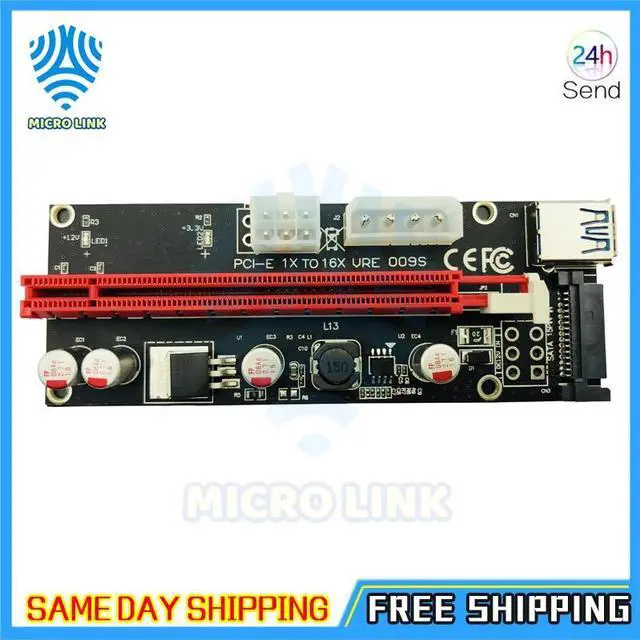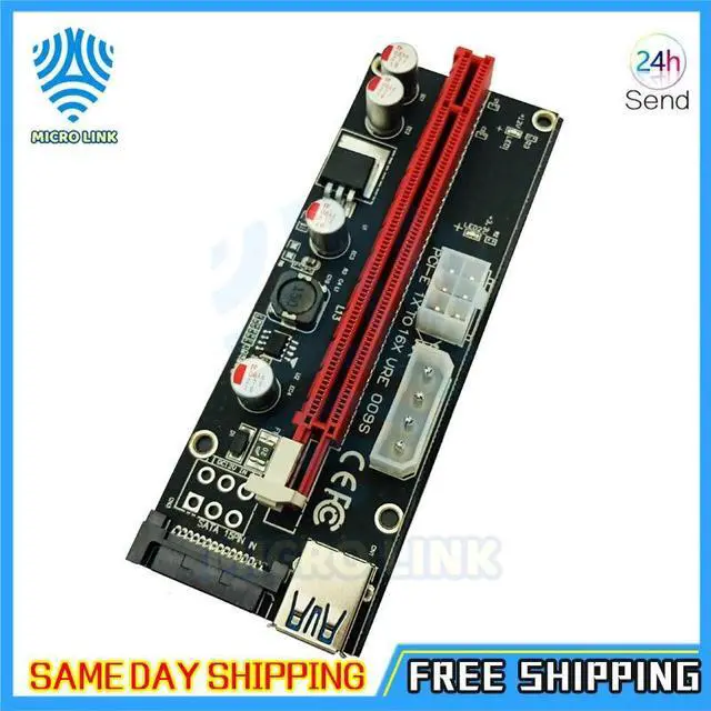 • 6pcs/lot VER009S PCI-E PCI E 1x to 16x Mining Machine Enhanced Extender PCIE Riser Card Adapter 60cm Power Cable for Bitcoin BTC