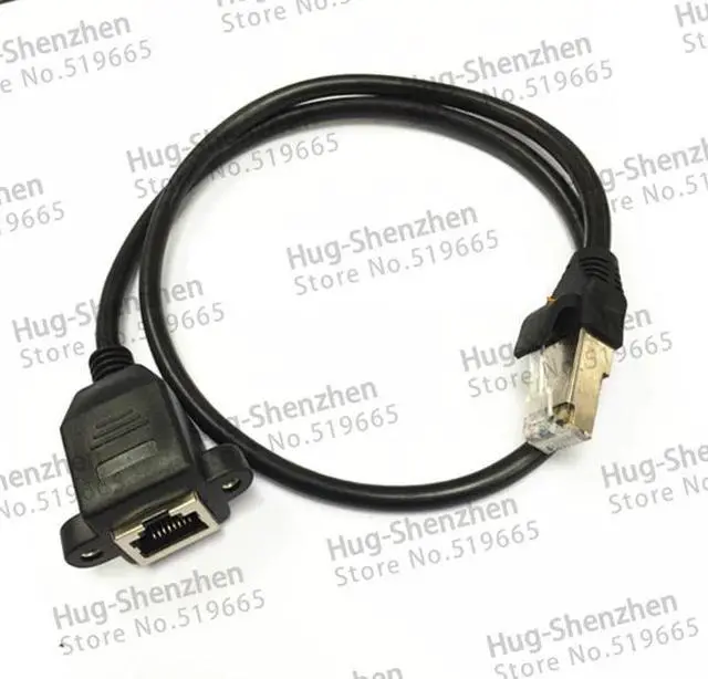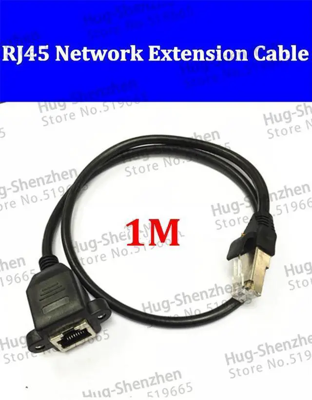 • RJ45 Black 1m For Cat Male to Female Ethernet Screw Lock ear Panel Mount LAN Network Extension Line Cord Cable Wholesale 10pcs