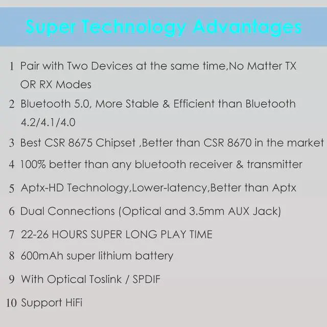 • Bluetooth 5.0 Transmitter Receiver CSR8675 APTX HD LL Bt Audio Music Wireless USB Adapter 3.5mm 3.5 AUX Jack/SPDIF/RCA for TV PC