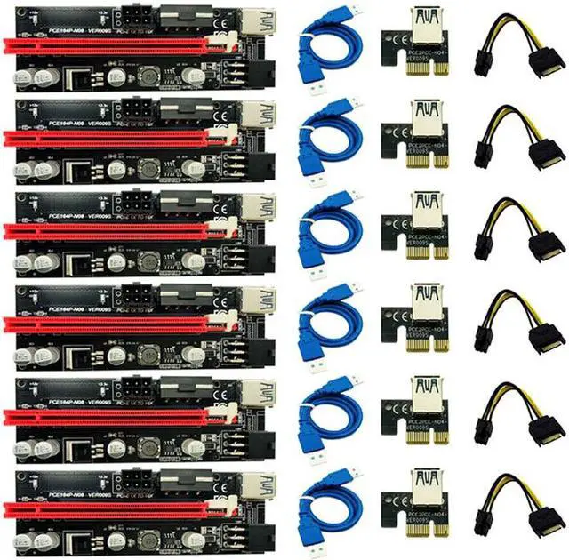 6Pcs est Ver009 Usb 3.0 Pci-E Riser Ver 009S Express 1X 4X 8X 16X Extender Riser Adapter Card Sata 15Pin to 6 Pin Power C
