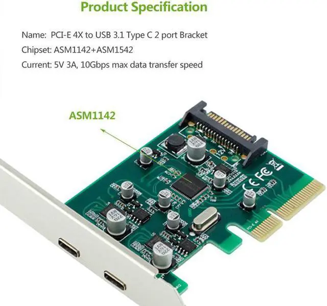 • 2 ports USB 3.1 Type-C PCI Express expansion Card Add On Card pci-e 4x to USB-C type c USB3.1 Adapter Super Speed 10Gbps