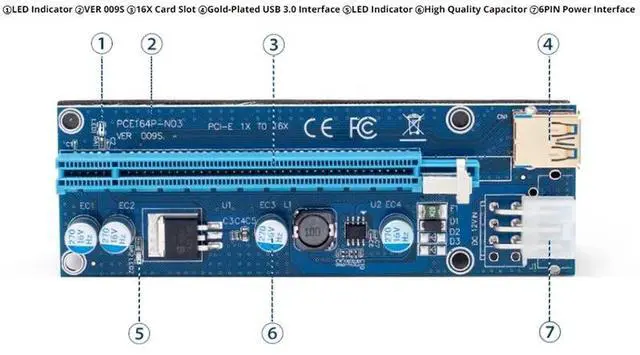 • 6Pcs VER009S USB 3.0 PCI-E Riser Express 1X 4X 8X 16X Extender Riser Adapter Card SATA 15Pin To 6 Pin Power Cable