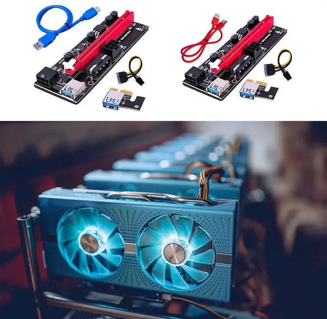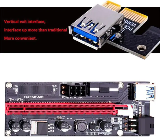 • 8pcs est VER009 USB 3.0 PCI-E Riser VER 009S Express 1X 4x 8x 16x Extender Riser Adapter Card SATA 15pin to 6 pin Power Cable