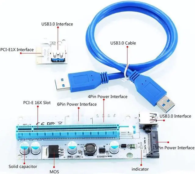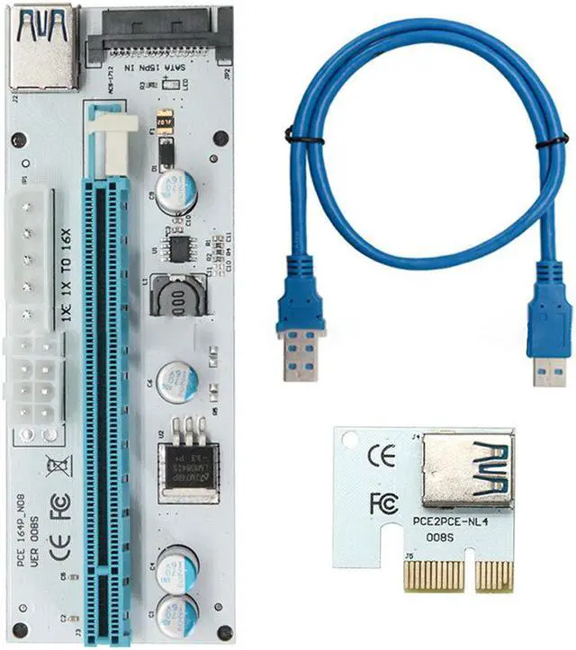 • 6PCS 008S 3 in 1 PCIe PCI-E PCI Express Riser Card 1x To 16x USB 3.0 Data Cable For Bitcoin Mining BTC Graphics Card