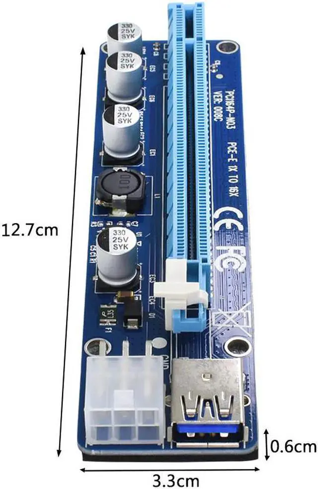 10pcs TISHRIC VER008C Molex 6pin PCI Express PCIE PCI-E Riser Card 1X 16X Extender 60cm USB 3.0 Cable For Mining Bitcoin Miner
