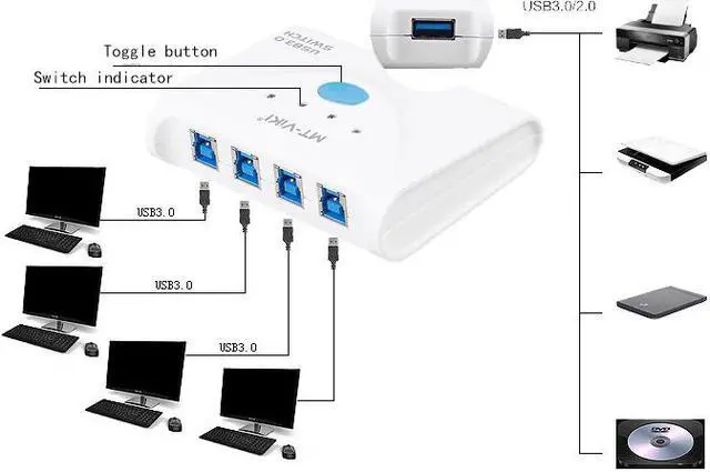 high speed USB3.0 sharing switch type-B 4 port usb3.0 hub printer sharing switch Four in and one out MT-SW341