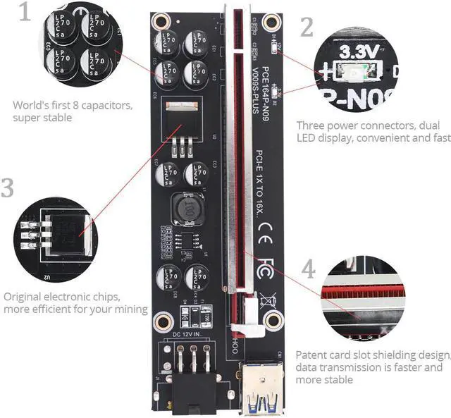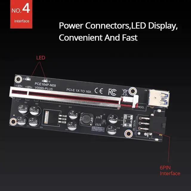 • 6pcs TISHRIC 2021 VER009S Plus PCI-E PCIE Riser Card 009s PCI Express Adapter Molex 6Pin SATA to USB 3.0 Cable 1X 16X Extender