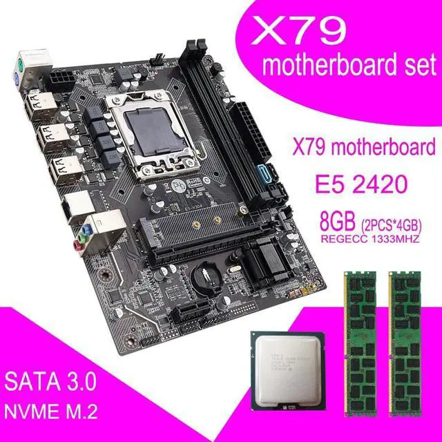 X79 Motherboard Set With Xeon Lga 1356 E5 2420 Cpu 2Pcs X 4Gb = 8Gb 1333mhz Pc3 10600R DDR3 Ecc Reg Memory Ram