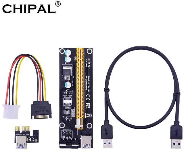 • CHIPAL 10PCS VER006 PCI-E Riser Card PCI Express PCI E 1x to 16x Adapter 60CM USB 3.0 Cable SATA to 4Pin Power for Bitcoin Miner