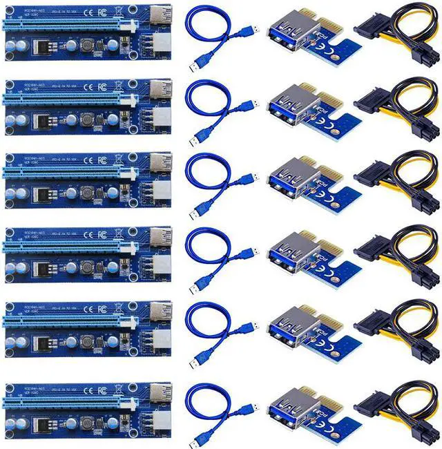 • 6pcs 006C PCIe 1x to 16x Express Riser Card Graphic pci-e riser Extender 60cm USB 3.0 Cable SATA to 6Pin Power for BTC mining