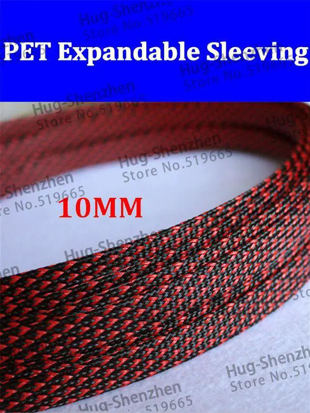 • 10mm 100M High density Flexible PET Expandable Braided sleeve wire harness sleeving - Black & Red color