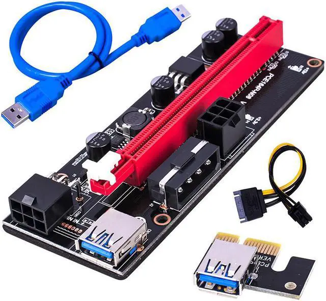• 6pcs est VER009 USB 3.0 PCI-E Riser VER 009S Express 1X 4x 8x 16x Extender Riser Adapter Card SATA 15pin to 6 pin Power Kabel