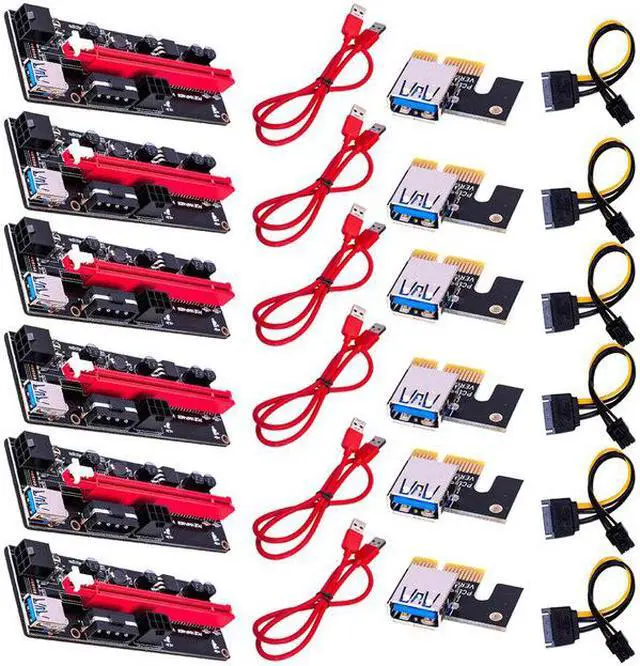 6pcs est VER009 USB 3.0 PCI-E Riser VER 009S Express 1X 4x 8x 16x Extender Riser Adapter Card SATA 15pin to 6 pin Power Kabel