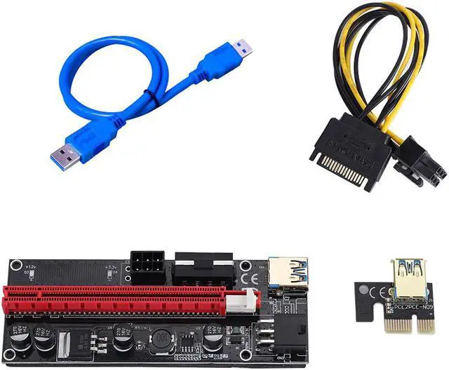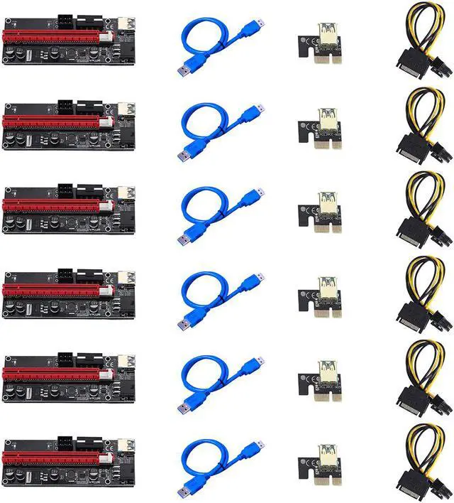 • 6pcs VER009 USB 3.0 PCI-E Riser VER 009S Express 1X 4x 8x 16x Extender Riser Adapter Card SATA 15pin to 6 pin Power Cable