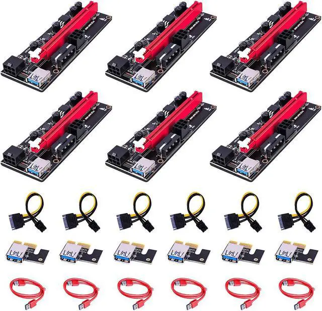 6pcs est Ver009 Usb 3.0 Pci-e Riser Ver 009s Express 1x 4x 8x 16x Extender Pcie Riser Adapter Card Sata 15pin To 6 Pin Power