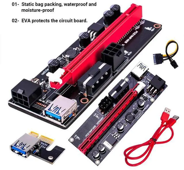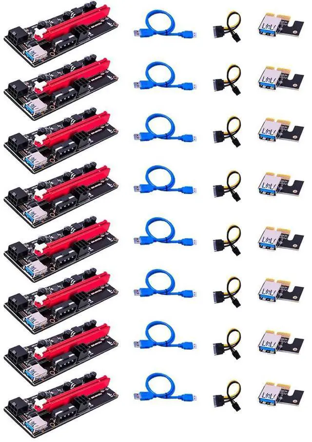 • 8 PCS of VER009S PCI-E Riser Card Dual 6Pin Adapter Card PCIe 1X to 16X Extender Card USB 3.0 Data Cable for BTC Mining Miner