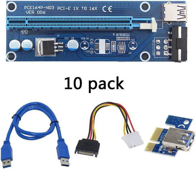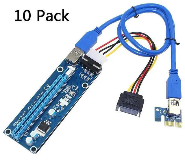 • 10pack VER 006 Pci-e Extender Pci Express Riser Card 1x To 16x 60cm Usb 3.0 Cable Sata To 4pin Molex Power For Btc Miner Machine