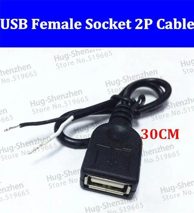 • USB female socket data adapter plug jcak Cable ,2Pin 2A3A ,Soldering ,DIY ,30CM 100pcs/lot