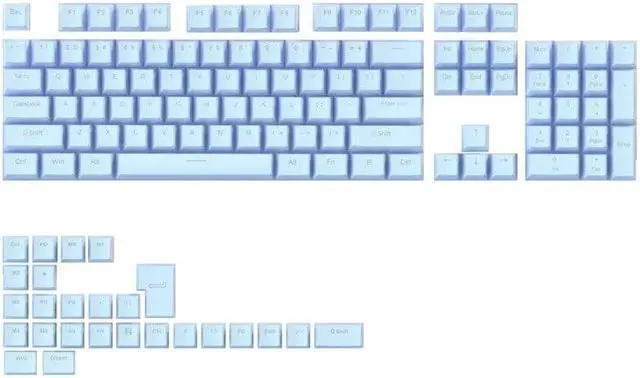 The product is a double-leather milk keycap, with closed characters, good light transmission effect and delicate hand feel, suitable for 61/62/68/71/81/84/87/89/96/98/100/104/108/980K standard layout mechanical keyboards.