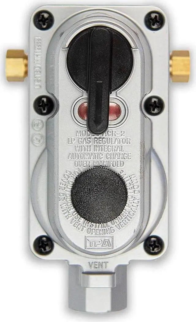 Two Stage Auto Changeover; 1/4 Inch SAE Inverted Flare Inlet And 3/8 Inch Female NPT Outlet; 30000 BTU; Approved For RV Use; Automotive Binding; Vertical Mount