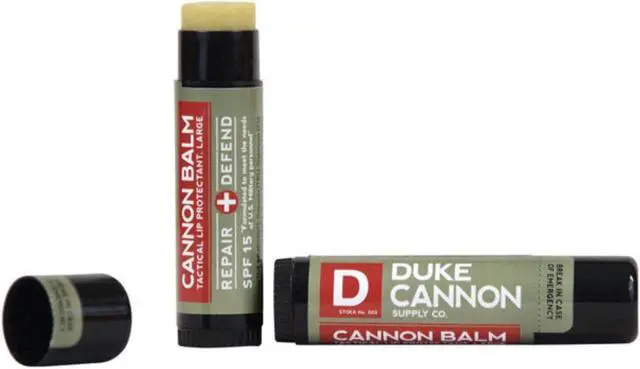 GRMT DUKE BALM RPR/DEFND - 9608332, Brand Name: Duke Cannon Scent: Mint Product Type: Lip Balm Container Size: 0.56 oz. Number in Package: 1 pk SPF: 15 SPF Nearly 4 times the size of traditional lip balms* Balm holds up in the harshest conditions* With premium organic ingredients your lips are sure to stay protected in any situation-it even promises to withstand 125 degrees* This package includes a free di Duke Cannon Mint Scent Lip Balm 0.56 oz. 1 pk.