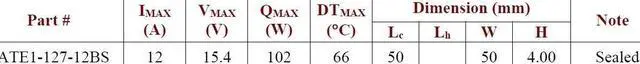 TEC Module Thermoelectric Cooler Peltier Module 127 Pairs 12A 15.4V 102W 50mm*50mm*4mm DTmax 66 degC with Sealed Edges ATE1-127-12BS