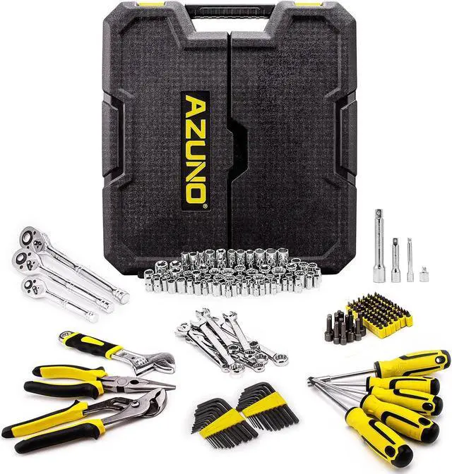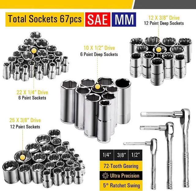 Complete Varieties - Our tool set features a comprehensive assortment of professional-grade tools, including wrenches, a magnetic level, a complete range of 1/4 inch and 3/8 inch sockets, precision screwdrivers, a hammer, tape measure, pliers, and more. We' ve included everything you need to take on any project with ease and confidence. Our tools are of the highest quality, built to withstand heavy use and designed for optimal performance.