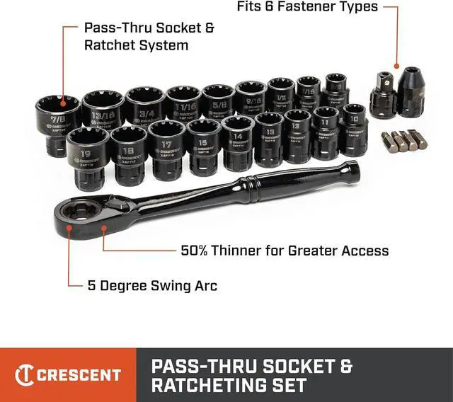 Pass-Thru socket and ratchet system eliminates the need for deep sockets