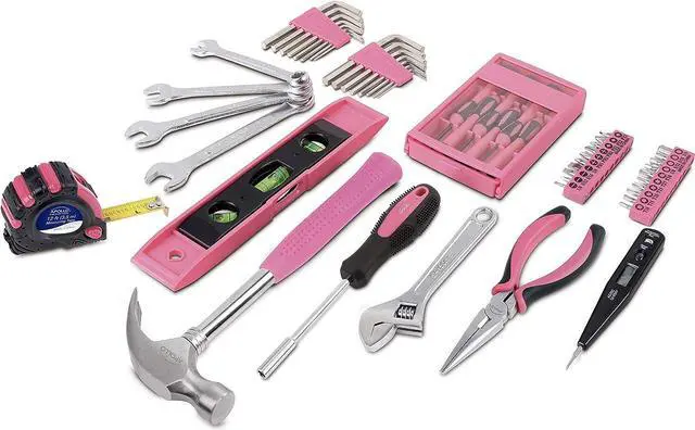 LIFETIME WARRANTY: Dont let the beautiful pink color fool you. Our Household tool set is mighty and as durable and well-made as our non-pink series. It comes with a lifetime warranty. The handles have double dipped plastic coating for grip and durability. All tools included meet or exceed ANSI critical standards and are heat-treated and chrome-plated to resist corrosion.