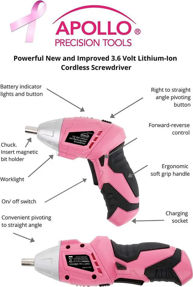 DONATION TO BREAST CANCER RESEARCH. Your purchase of this product from APOLLO TOOLS pink tool line comes with a $1 donation to breast cancer research.