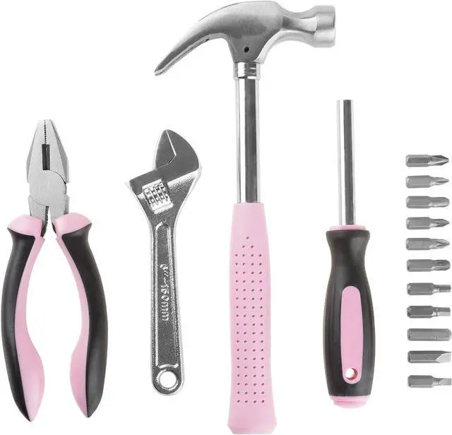 GENERAL USES 15-piece tool set is designed to tackle most assembly, maintenance, and repair projects around the house or office. Fixing leaky kitchen or bathroom faucets, hanging up pictures, or tightening up a loose screw on your bike, this tool set has everything you will need from hammering, cutting, screwing, and more.