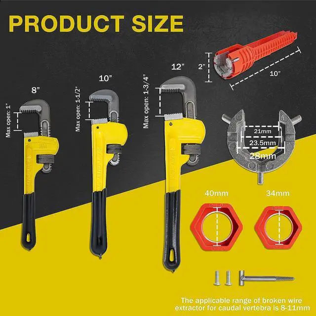WIDE USE: This adjustable wrench set is suitable for all pipe related home improvement repairs that need a tight grip, such as gas tank repair, household plumbing, vehicle maintenance. The deep grooved teeth of each straight pipe wrench lock in place to provide a confident grip around smooth, round surfaces like showerheads or bathroom sinks and drains. This home tool kit is versatile enough for home use as well as professional use.
