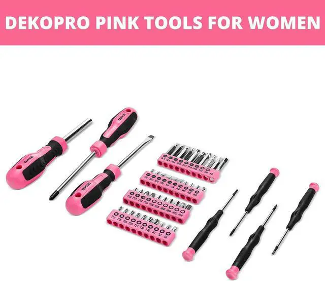 FASHIONABLE APPEARANCEPerfect for your home use or gifts. Stylish design, practical, safe and convenient pink tool set, perfect present for Christmas, Birthday, Anniversary, Valentine' s Day, Mother' s Day, etc.