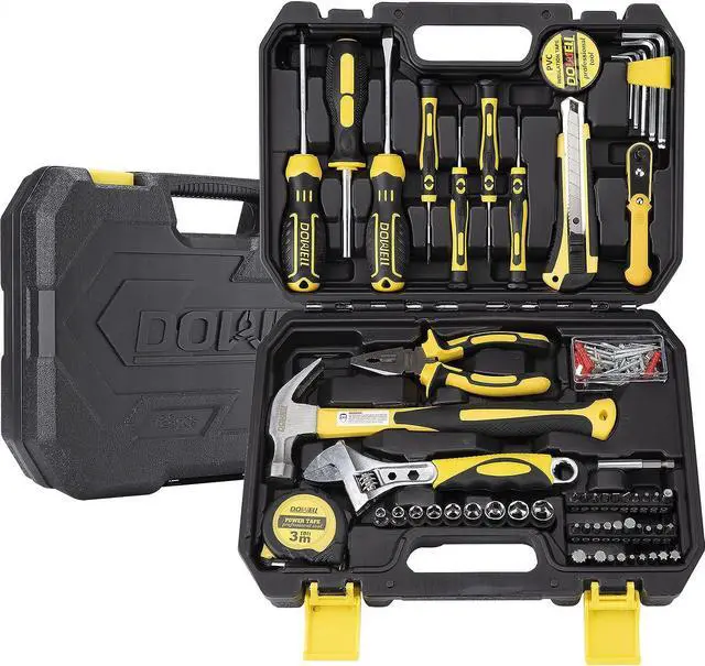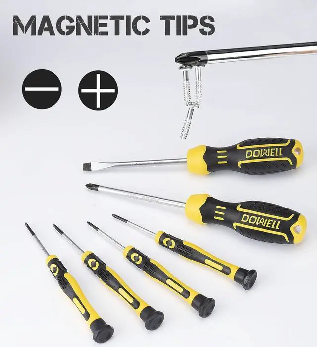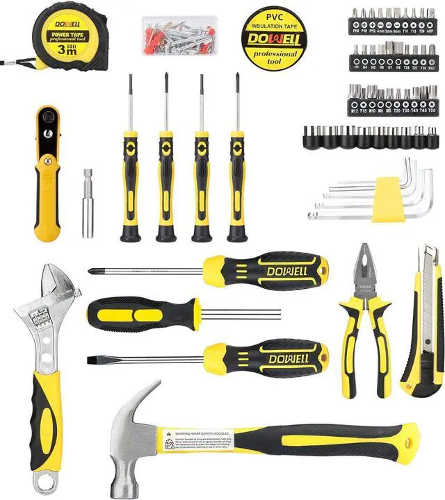 [Easy to Carry and Store] For convenient storage and portability, this tool kit includes a robust blowmolded casing. This tool box' s sturdy interior and organizers keep tools organized, tidy, and safe. To stop the tools from spilling out when you open the toolbox, turn the side that says " DOWELL" up.